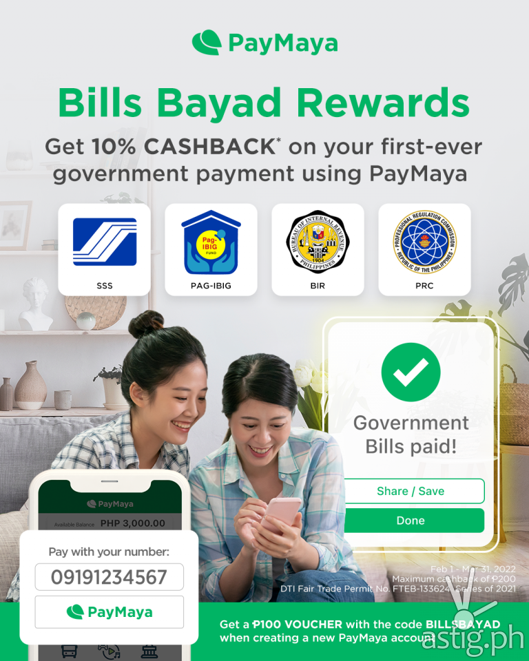 From February 1 to March 31, customers who will pay for their Pag-IBIG, SSS, PRC, and BIR fees and dues for the first time using PayMaya can get a 10% cashback voucher. Meanwhile, existing customers who are paying their recurring fees using PayMaya can also enjoy a 5% cashback voucher monthly during the promo period. Users can get up to P200 cashback.