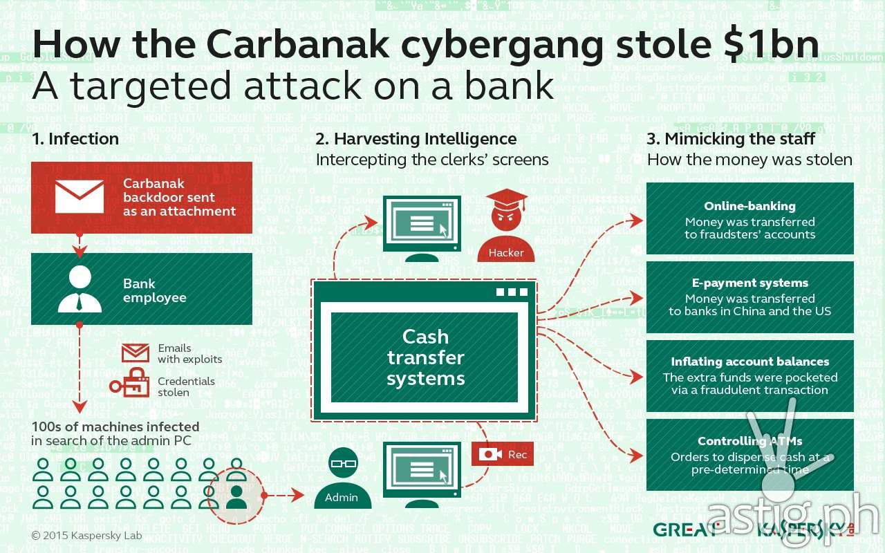 The Carbanak criminal gang responsible for the cyberrobbery used techniques drawn from the arsenal of targeted attacks.