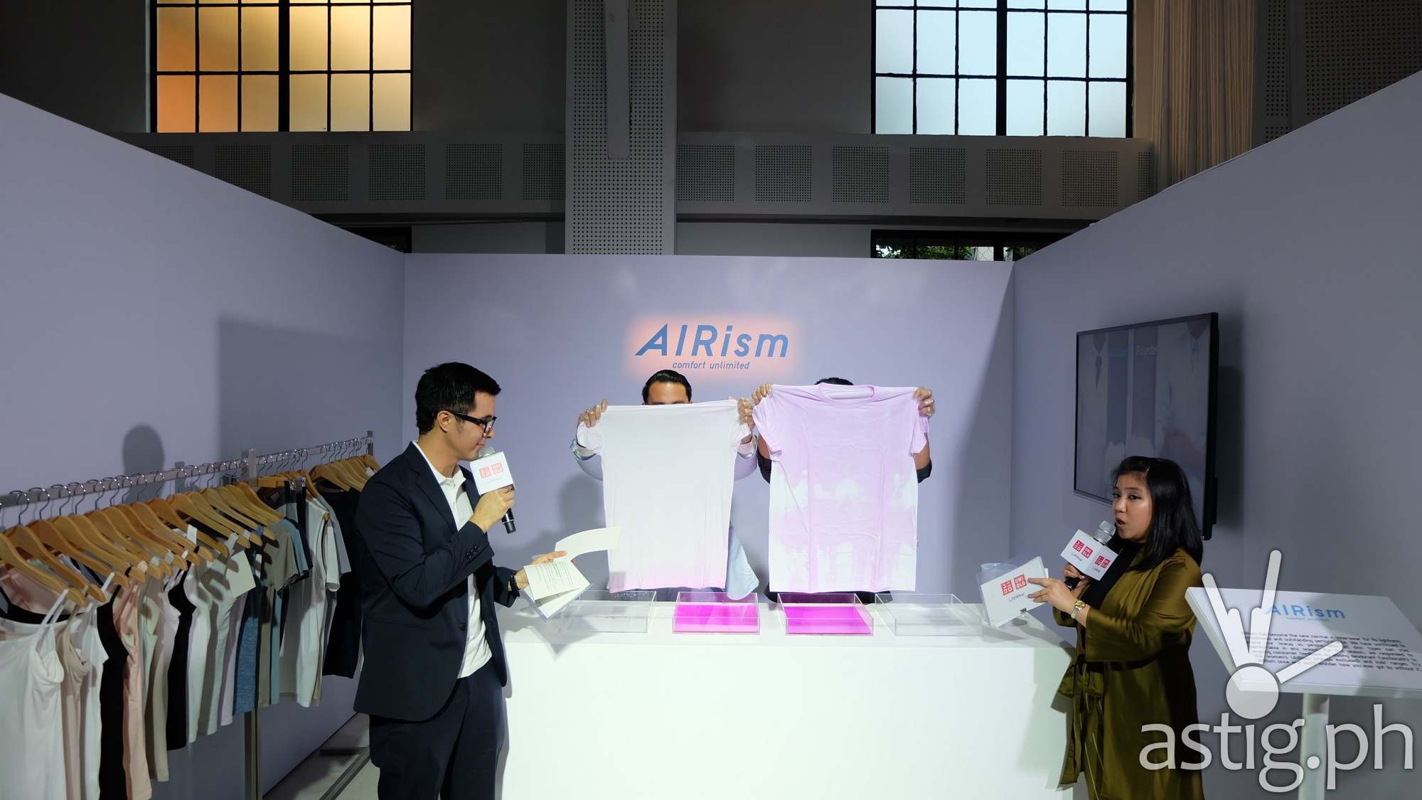 Layered underneath one’s clothes, it adapts to all skin types and adapts according to the season. It additionally has a quick-drying technology so discomforts from perspiration are removed. Finally, for this season, they added deodorant functionality to the women’s (AIRism bra tops excluded) and kid’s ranges. You can see in the photo above that after shirts are drenched in ammonia, the AIRism (the left one) turns back into its original color since it repels odor. On the other hand, cotton is stained with pink since it couldn’t do what AIRism can.