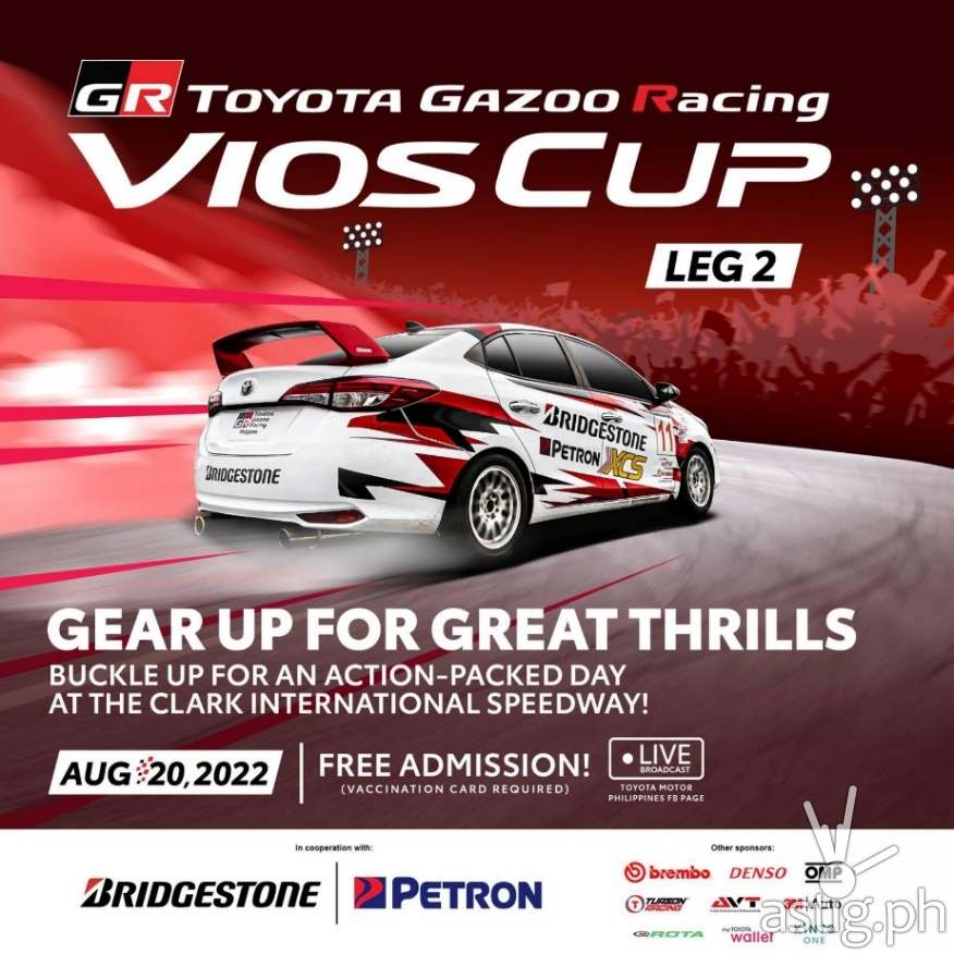 The 2022 TOYOTA GAZOO Racing Vios Cup is organized in cooperation with Bridgestone and Petron, and is supported by Brembo, Denso, OMP, Tuason Racing, AVT, 3M, ROTA, myTOYOTA Wallet and Kinto One.