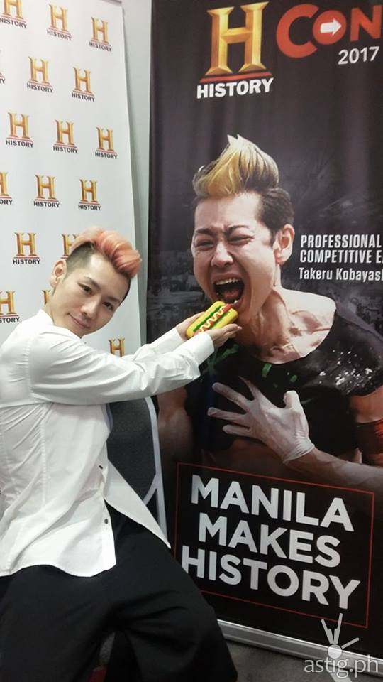 Japanese professional competitive eater Takeru Kobayashi is so cute and fun to talk to in person. With minimal known English, he is also excited to be in Manila to experience what's it like being at a History Con.. He flew in from New York, where he is based, together with his longtime work partner and lovely wife, Ms. Maggie.