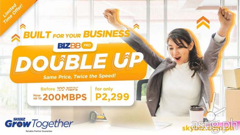 Now with its new BIZ BB Pro Double Up promo, subscribers can fully utilize SKYBIZ’s business-grade internet with boosted speeds at no extra cost. Users can enjoy seamless connectivity with their clientele, conduct online transactions with ease, and boost work collaboration, with its 100 Mbps plan now running at 200 Mbps with personalized account management and 24/7 technical support for the same price of only P2,299.