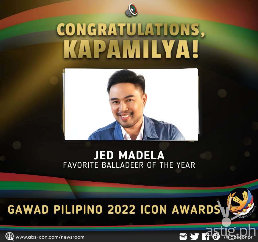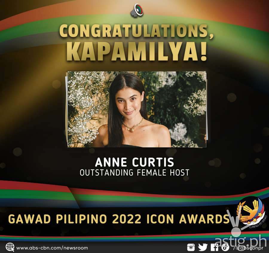 Kapamilya artists were also honored including Anne Curtis (Outstanding Female Host), Ogie Alcasid (Most Outstanding Male Host of the Year), Joshua Garcia (Outstanding Performance by an Actor), Ivana Alawi (Best Actress), Jed Madela (Favorite Balladeer of The Year), Anthony Barion (Promising Young Male Host Award of The Year), Moira Lacambra (Promising Pop Solo Award of The Year), and Arjo Atayde (Outstanding Public Servant of the Year).