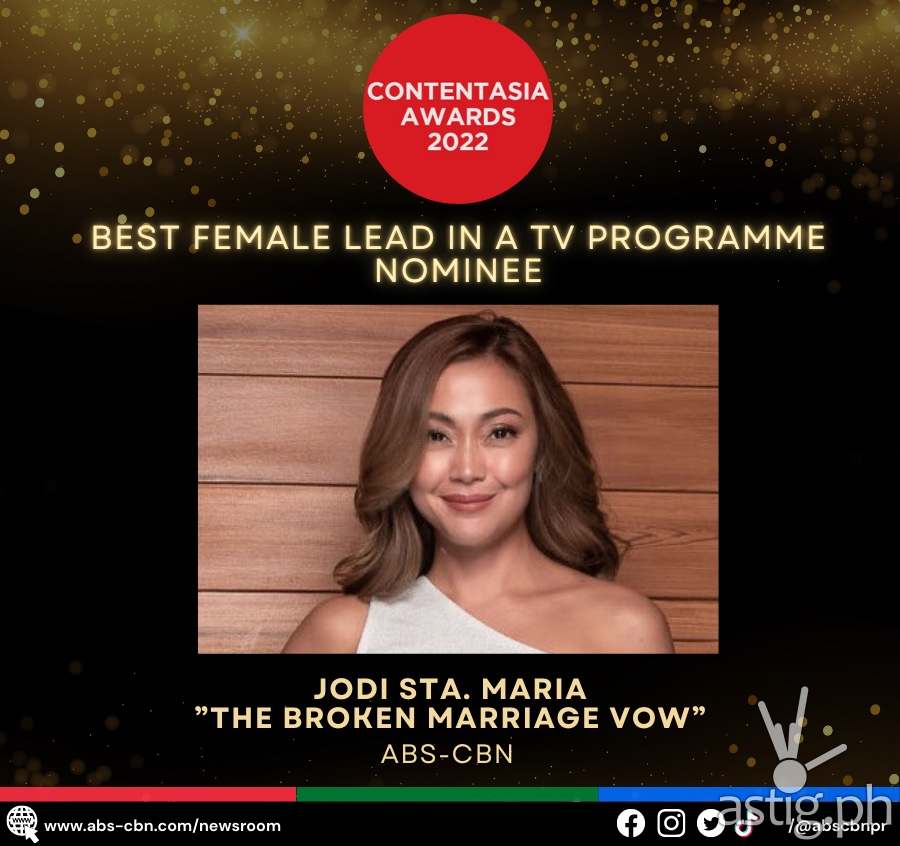 Lead actress Jodi Sta. Maria also received a nod in the Best Female Lead in a TV Programme with actors from Malaysia, Thailand, and Taiwan.