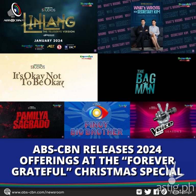 PHILIPPINES – ABS-CBN, a leading Philippine media and entertainment company, showcased its 2024 entertainment offerings during the “Forever Grateful: ABS-CBN Christmas Special 2023.” This event marked a significant reveal of upcoming teleseryes, reality shows, and adaptations of popular international series, further solidifying ABS-CBN’s position as a content powerhouse in the Filipino entertainment industry.