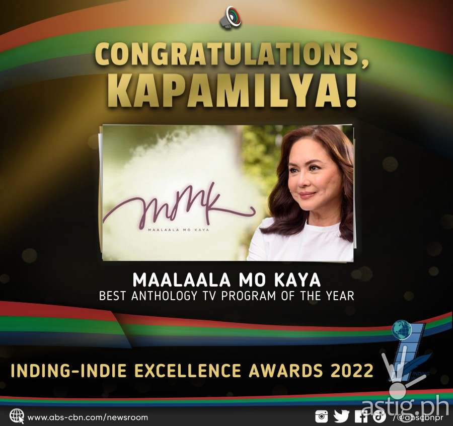 “TV Patrol,” the multi-awarded flagship primetime newscast of ABS-CBN, was named as the Best News Program of the Year, while “Maalaala Mo Kaya,” the longest-running drama anthology on Philippine television, was hailed as the Best Anthology TV Program of the Year.