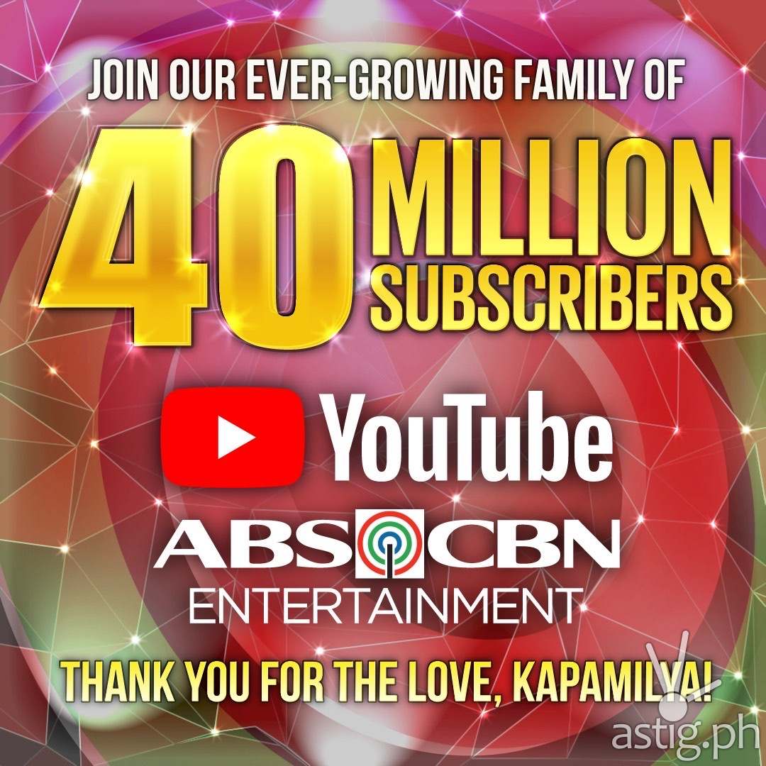 MANILA, Philippines – ABS-CBN Entertainment is still the most subscribed YouTube channel in all of Southeast Asia as it achieved another milestone by hitting 40 million subscribers on the popular video streaming platform.
