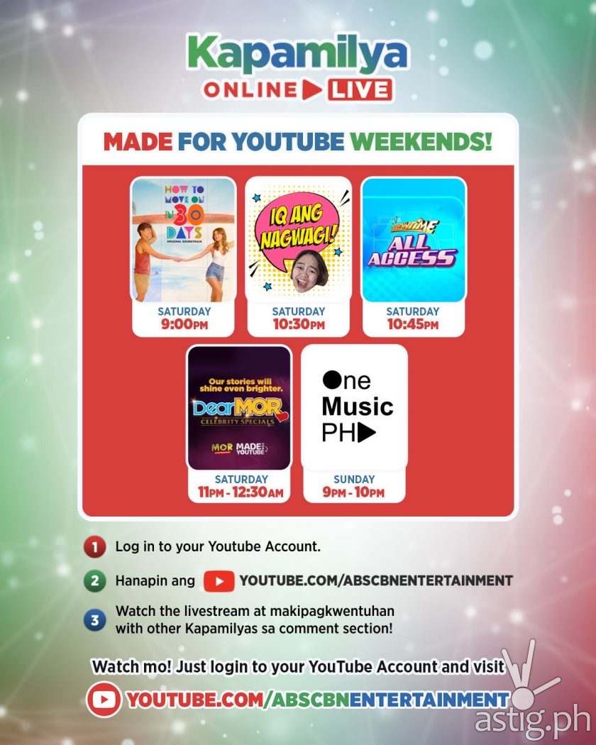 As the country’s biggest content provider, ABS-CBN is now offering its Made for YouTube exclusive shows on a special weekend primetime block via Kapamilya Online Live on YouTube.
