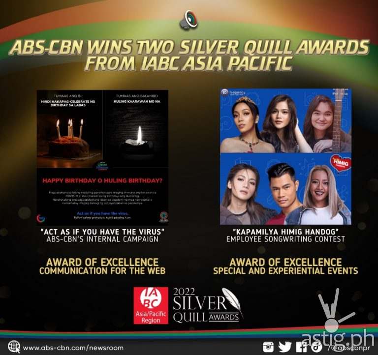 MANILA, Philippines – ABS-CBN’s “Kapamilya Himig Handog” songwriting contest and “Act As If You Have the Virus” internal communications campaign bagged top honors at the prestigious 2022 Silver Quill Awards given by the International Association of Business Communicators (IABC) Asia Pacific.