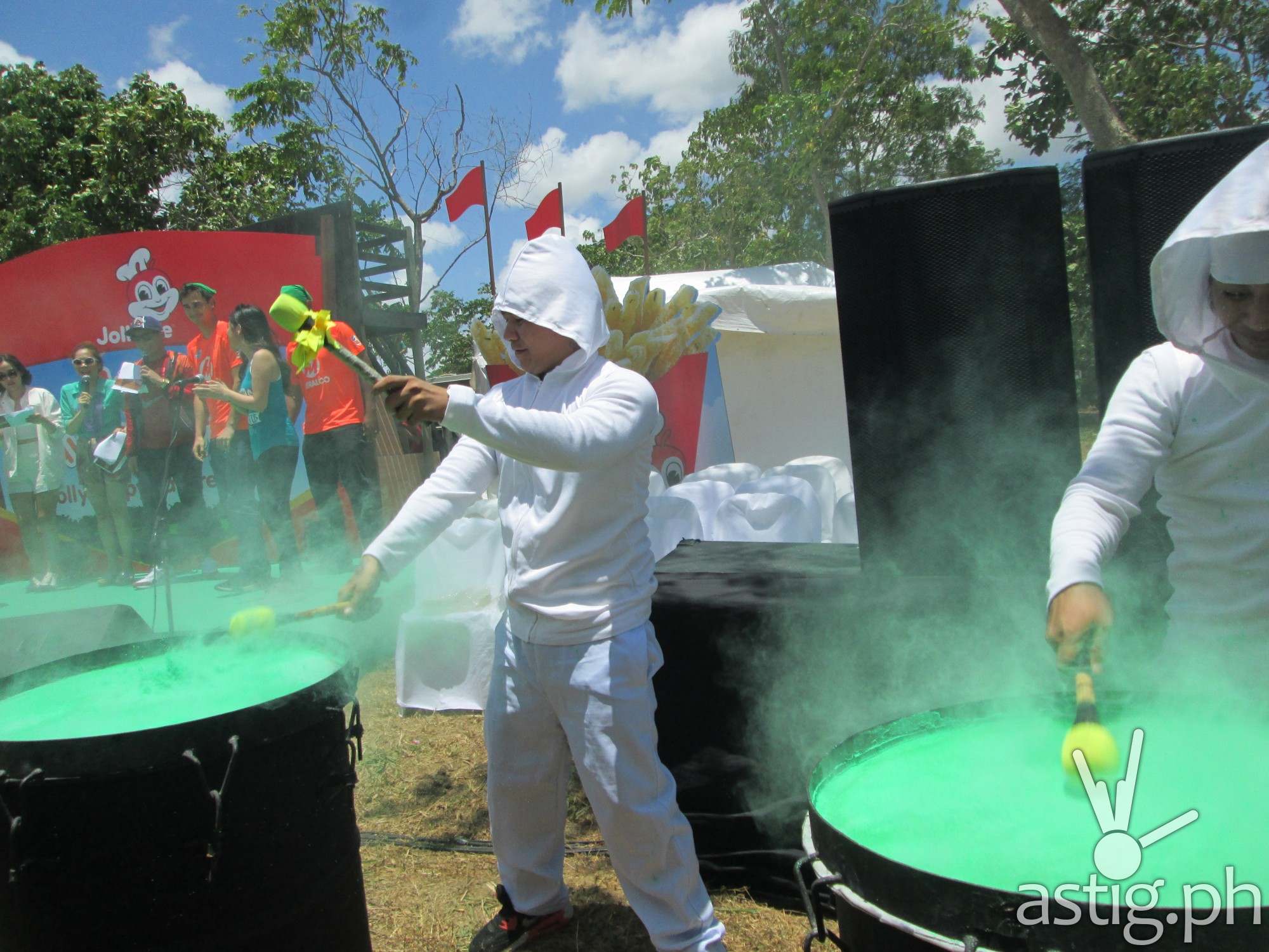 To celebrate this new exciting twist to Jollibee’s beloved Jolly Crispy Fries, the new flavors were officially launched in a team-building hub in Santa Rosa, Laguna. Loyola Meralco Sparks FC players (from left) Phil Younghusband, Curt Dizon, and Ric Padilla were challenged to do the Friesticle Course at the Jolly Flavorventure Park.