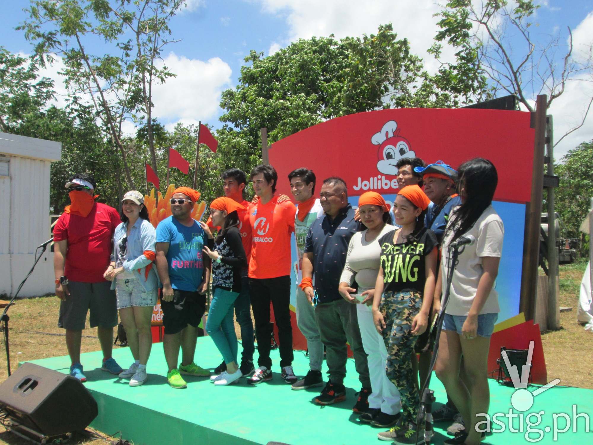 Jollibee Senior Marketing Manager Kay Segismundo (fourth from right, front) and Jollibee PR Director Arline Adeva (third from left) together with the winners from Team Sour Cream headed by Loyola Meralco Sparks FC player Ricardo Padilla (second from right) and YouTube personality Janina Vela (fifth from left)