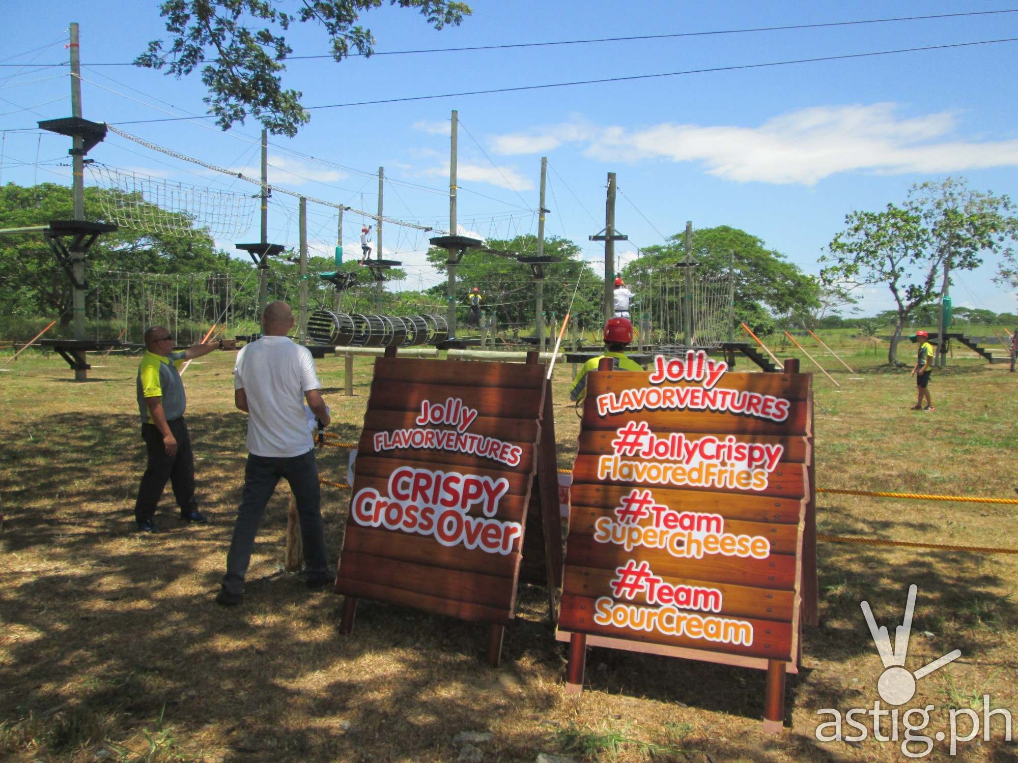Astig adventure as race teams do strategy on how to win the race. Balance those ropes and whose gonna do the rope obstacles first and then. Who’s gonna crawl, run step up on the tower, resolve puzzles strategy and zip lines. The best time wins, so we… sour cream does. See you next travel food trip adventure! Dito sa Jollibee Masaya at Bida ang Sarap!