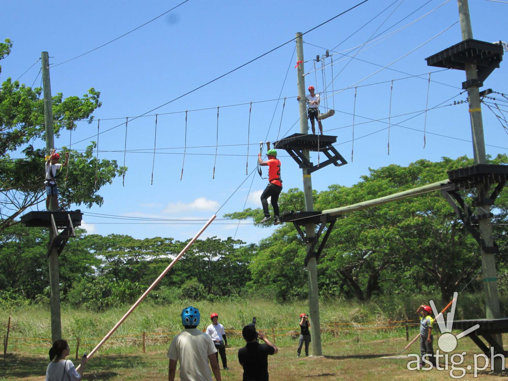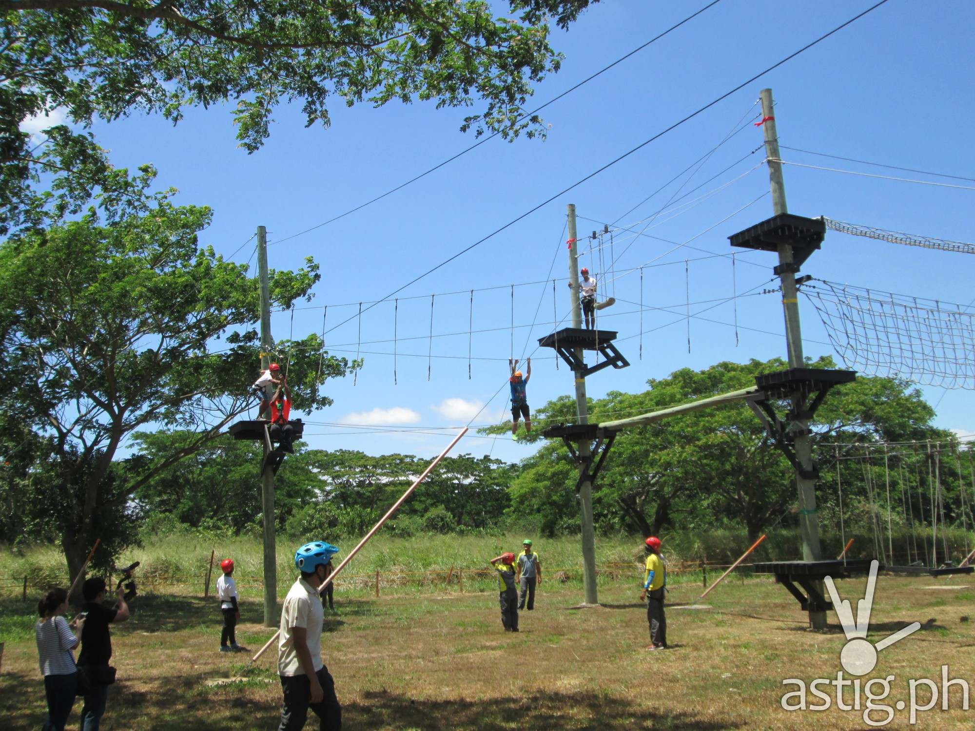 Im with team Sour Cream lead by Phil Younghusband as our team captain. What we did first was the obstacle course initiatives as we run, jump, hop and do hurdles like what they do in Olympics. What we did is just a small local amateur fun gig. I did crawl to enter this sewer hole above like Ninja Turtle as fast as I could. Some members do climb like spider-man on high ropes, do aerial walk, does zip-line like Batman.