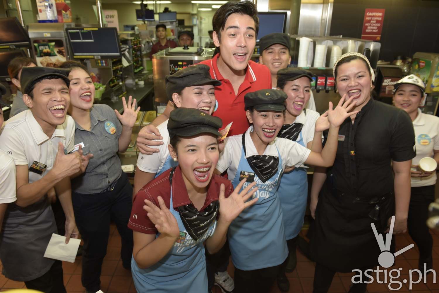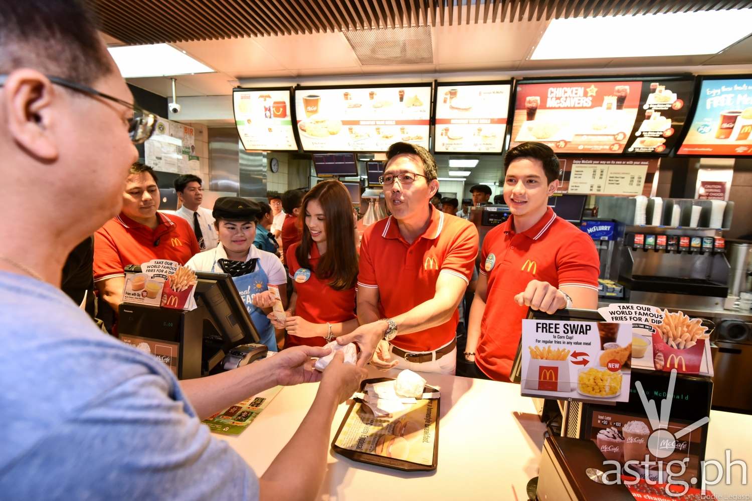 The brand’s most recent endorsers Alden Richards and Maine Mendoza, popularly known as “AlDub”, gave McMuffin sandwiches to customers in McDonald’s Bluebay Walk, Pasay.