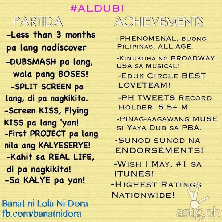 Fans referred to a post by Facebook page “Banat Ni Lola Ni Dora” which attempts to explain the AlDub phenomenon: