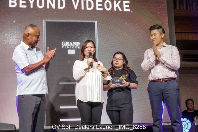 The photo shows Andres V. Sanchez, CEO and Chairman of The WOW Group and the 17 dealers who attended the launch together with their new Grand Videoke Symphony 3 PRO, namely: Astrovision, Automatic Centre, Dimdi, Emcor, First Family Appliance, Gaisano Mall, Hardware Exchange, Imperial Appliance, JWPT Enterprises, KCC Mall, Odyssey, Robinsons Appliances, Royal Star Appliance, Storm Technologies, True Value, Western Appliances and Workstation. The said delear’s are the first ones to own the new Grand Videoke model.