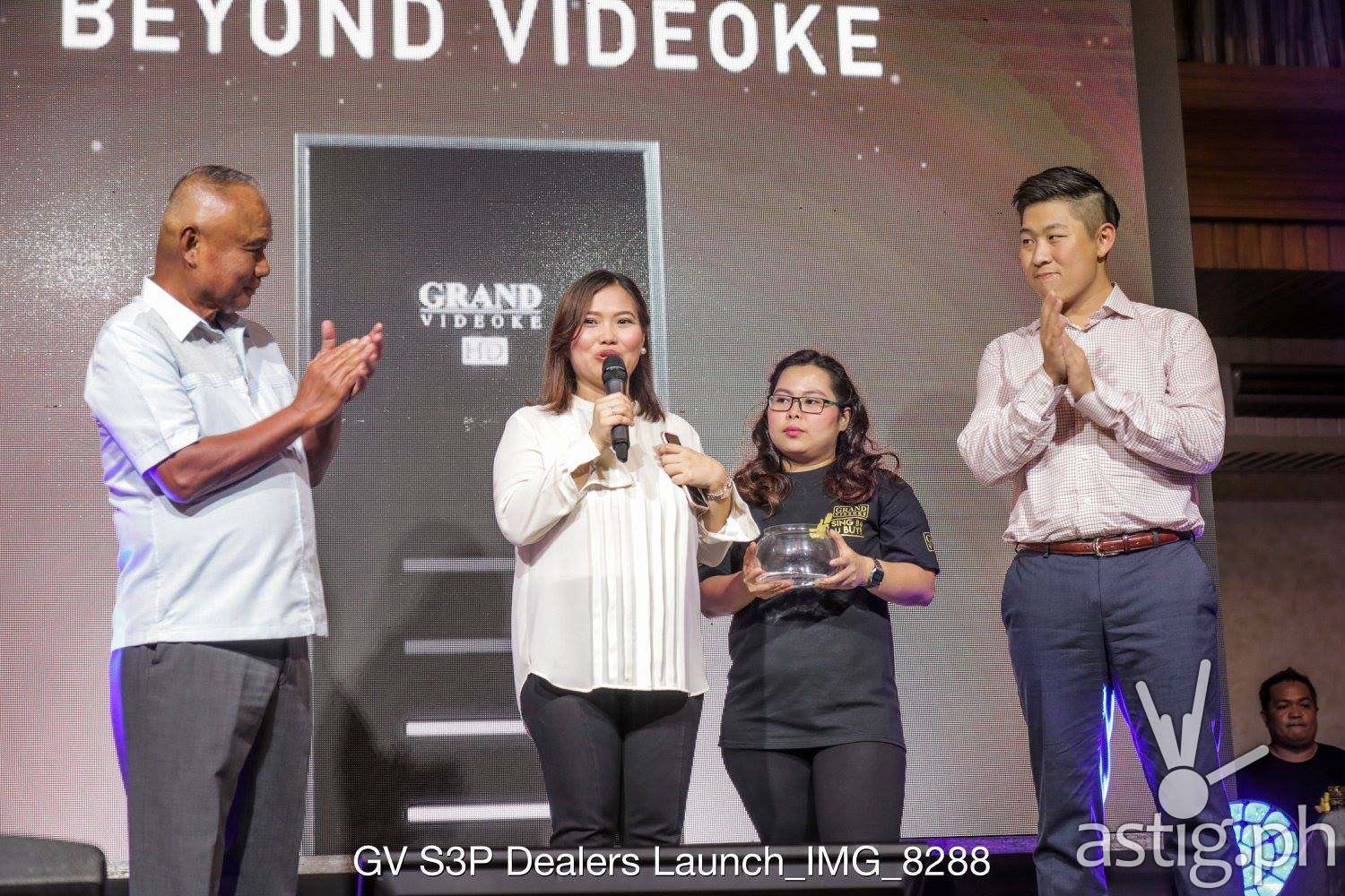 The photo shows Andres V. Sanchez, CEO and Chairman of The WOW Group and the 17 dealers who attended the launch together with their new Grand Videoke Symphony 3 PRO, namely: Astrovision, Automatic Centre, Dimdi, Emcor, First Family Appliance, Gaisano Mall, Hardware Exchange, Imperial Appliance, JWPT Enterprises, KCC Mall, Odyssey, Robinsons Appliances, Royal Star Appliance, Storm Technologies, True Value, Western Appliances and Workstation. The said delear’s are the first ones to own the new Grand Videoke model.