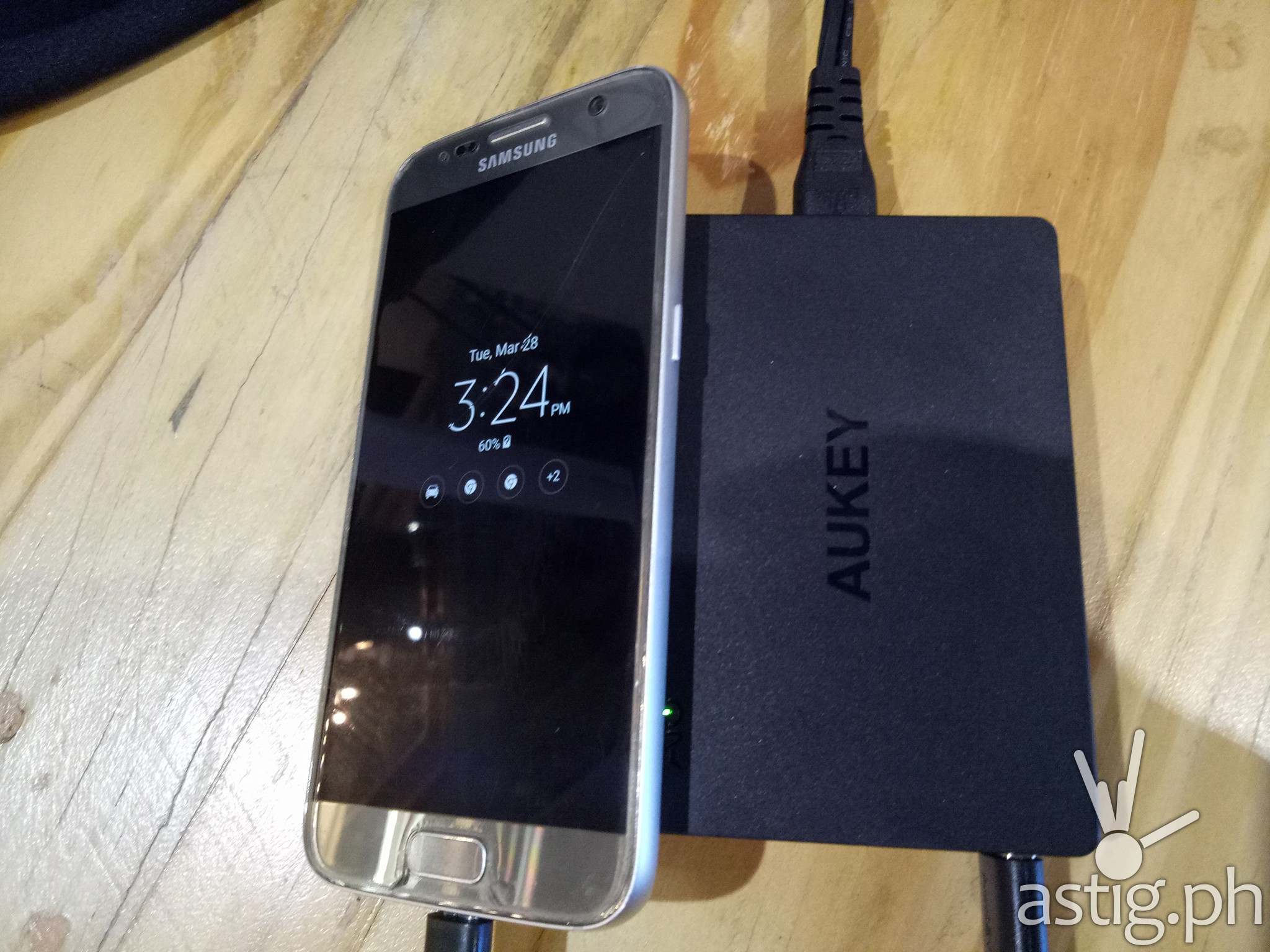 One of the best features of the Aukey chargers, you can charge multiple devices at the same time.