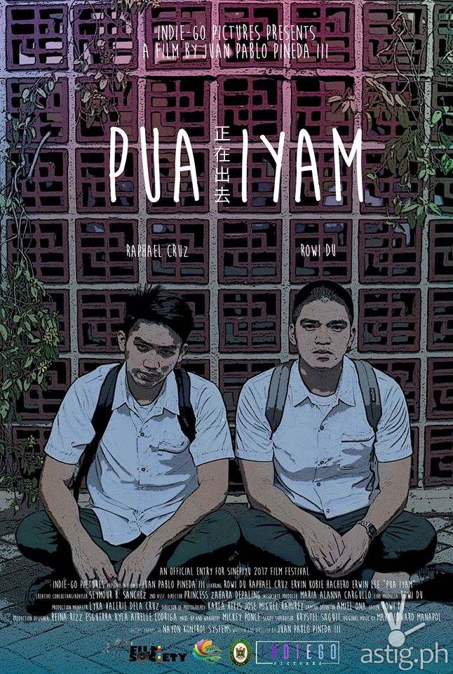 In Pua Iyam (Coming Out), a young Filipino-Chinese student (Rowi Du) comes out to his childhood friend (Raphael Cruz). The short film brought home Best Screenplay and Best Actor in a Lead Role at the 9th Largabista Film Festival in Tacloban City, Leyte; a special citation on gender sensitivity from the first Palawan International Film Festival; Best Film, Best Director, Best Performance and Best Poster at Sinepiyu 2017’s Black Reel category; Gold Award for Best Picture, Outstanding Direction, Design Excellence and Technical Excellence awards at CineSB 7: The Main Installment’s Sibol category; Best Cinematography and another special citation from Piling Obrang Vidyo XIV; and Cardinal Bronze Film Award, Best Film Editing and Best Cinematography at CineMapúa 2018’s intercollegiate category.