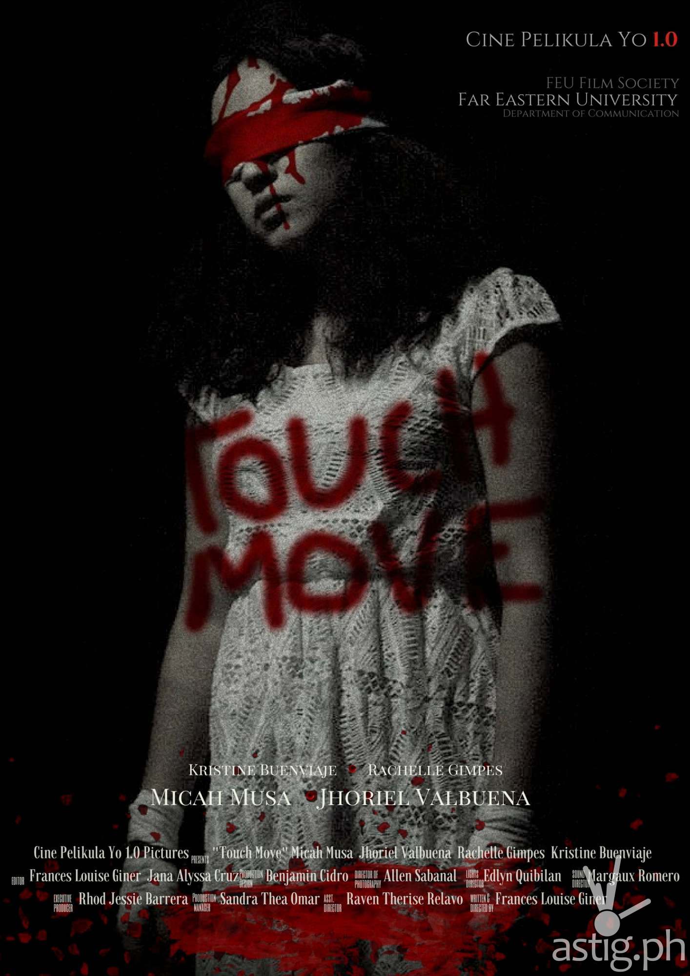 With characters as chess pieces, Touch Move depicts the difficulty of moving on. The film won Best Screenplay, Best Production Design, Best Sound and Second Prize at Sinepiyu 2017’s Black Reel Category. It also garnered different awards from the Ateneo Video Open, Pelikultura: The CALABARZON Film Festival and 9th Largabista Film Festival.