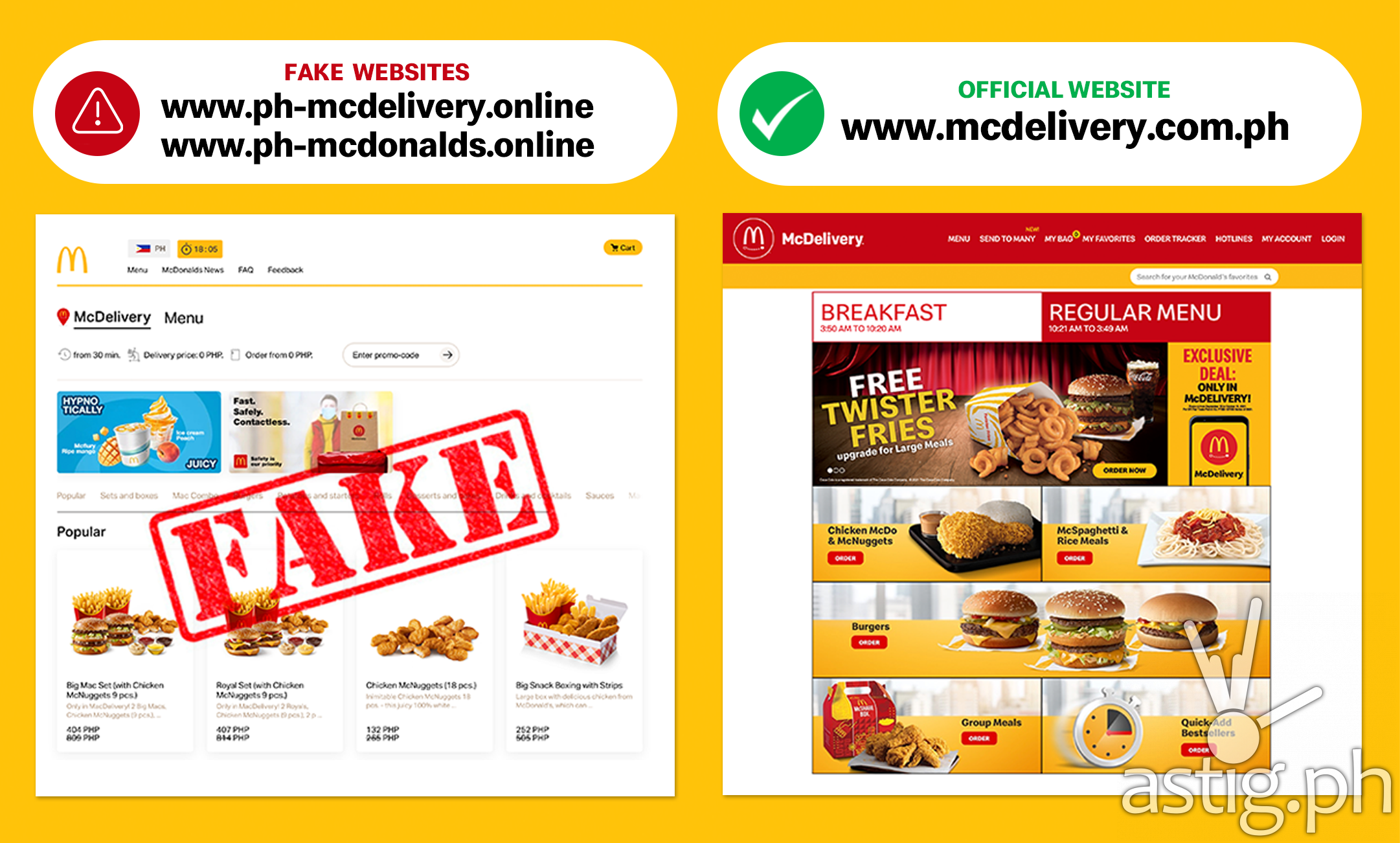 McDonald’s Philippines released an advisory in its Facebook page advising customers that this is not their official delivery website, nor is it recognized or related to McDonald’s. The brand has been vigilant against such fraudulent activities such as selling counterfeit products online to these kinds of websites that aim to collect one’s payment details.