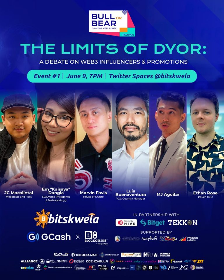 Guided by its mission to provide Filipinos with logical, factual, and insightful Web3 education, Filipino-led edutech firm Bitskwela is turning to Twitter Space to host the debate titled “The Limits of DYOR: A Debate on Web3 Influencers and Promotions.” The one-hour debate will begin at 7:00PM (PHT) on June 9, 2023.