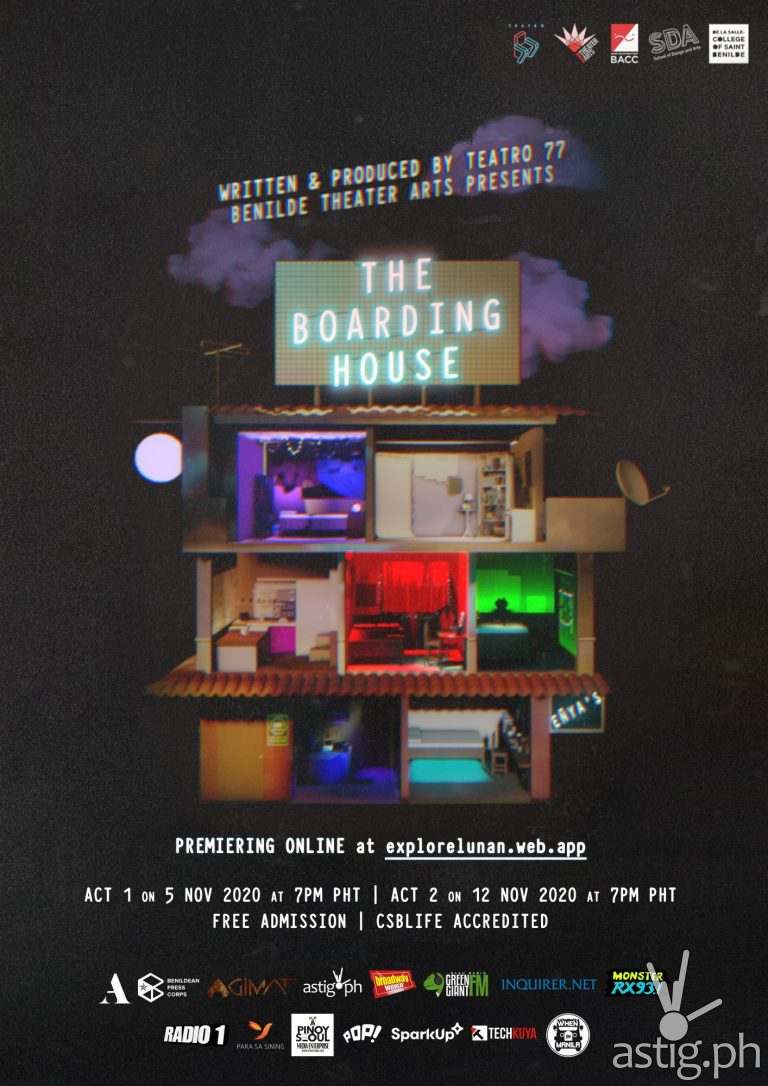 In an alternate Philippine universe, Metro Manila has been acquired by an umbrella corporation, Owlways Watching and Listening (O.W.L Corp). Today it is called Lunan City, where mythical creatures live alongside humans and surveillance cameras follow you wherever you go. In the year 2030, schools of Flying Fish have caused a toxic outbreak across the city that forces its citizens to hide indoors. Follow the stories of seven artists living in the Eñya Boarding House. Each must struggle, strive and survive the circumstances of their strange new normal.