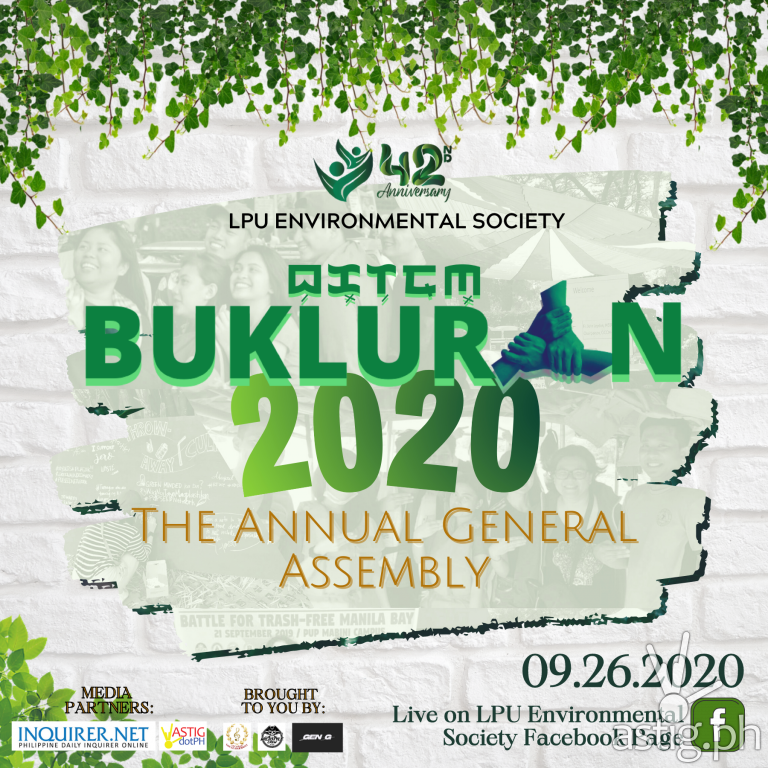 The Lyceum of the Philippines University Environmental Society (LPU ES) invites you to Bukluran 2020, the annual general assembly of the society.