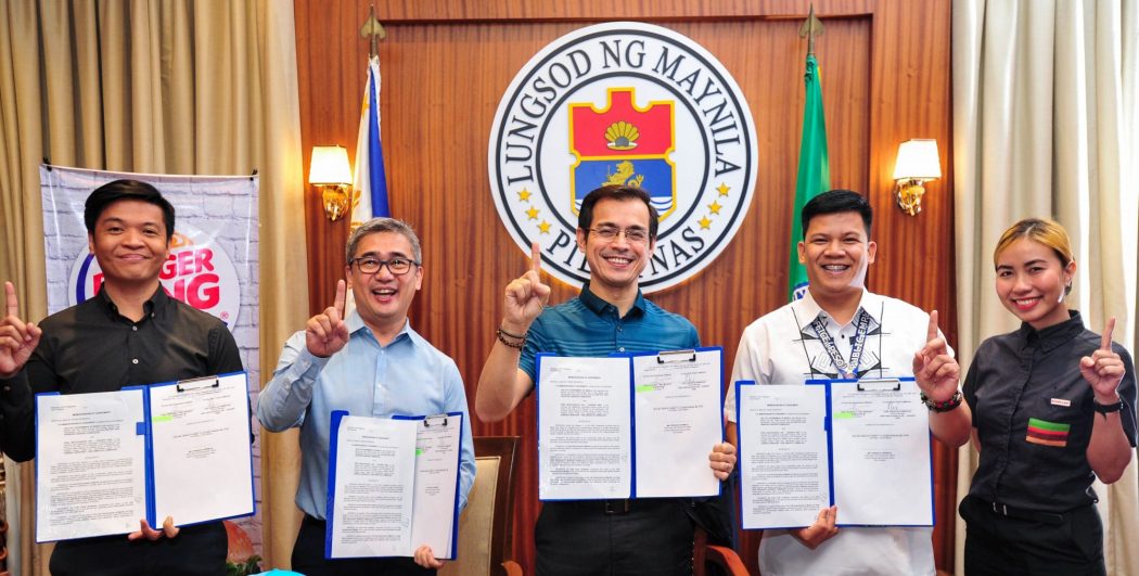 Inclusive Jobs Program. Qualified senior citizens and the differently abled in Manila can now start working in Burger King branches after Manila signed a partnership agreement with Burger King Philippines. Shown here are (from left) Burger King Philippines HR Head Tony Wenceslao, Burger King Philippines General Manager Joey Dominguez, Manila Mayor Isko Moreno, Manila PESO Manager Fernan Bermejo, and Burger King Assistant Restaurant Manager Hani Sumampil.