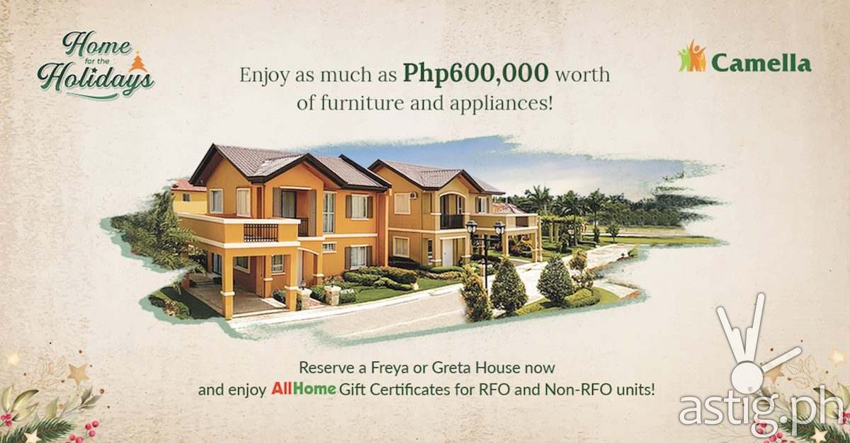 Camella brings more incredible news to our homebuyers this holiday season. Following the announcement of the Home for the Holidays 2023 promo, the largest homebuilder in the Philippines announces an addition to the staggering list of incentives, an exclusive AllHome Move-in Package of as much as PHP 600,000 for Freya and Greta house models.