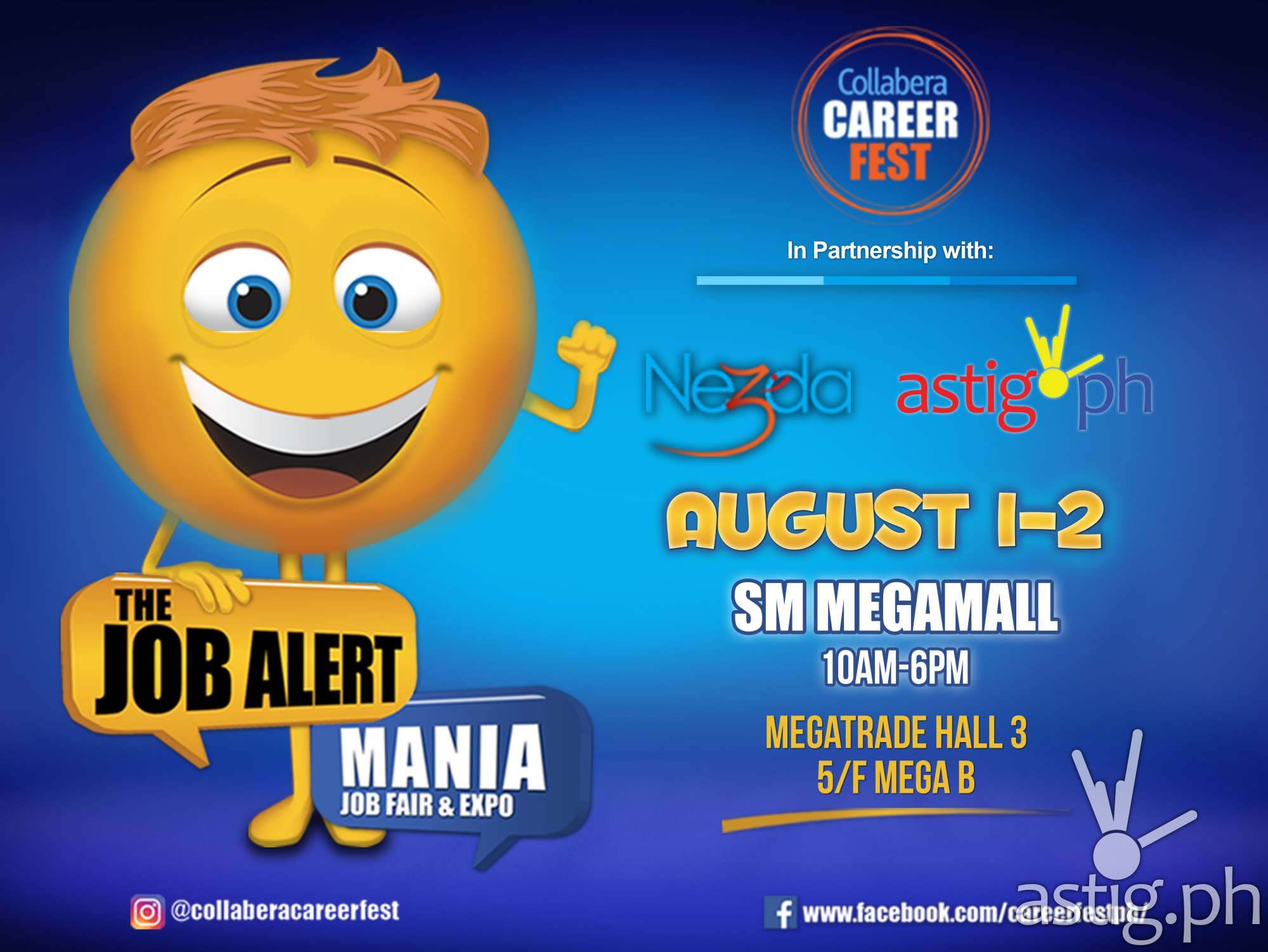 Drop by The Job Alert Mania at SM Megamall Megatrade Hall 3 on August 8 and 9! Gates open at 10 AM.