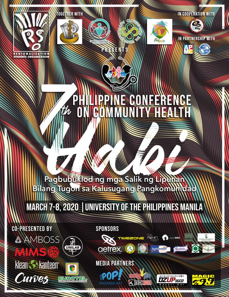 In the previous years, PCCH tackled topics such as the Philippine health system, career paths and innovations in healthcare, as well as disaster risk reduction and management. On its 7th year, the conference will take a closer look on our society and at the different threads that intertwine to create the fabric that is our health system with the theme “HABI: Pagbubuklod ng mga Salik ng Lipunan Bilang Tugon sa Kalusugang Pangkomunidad” .