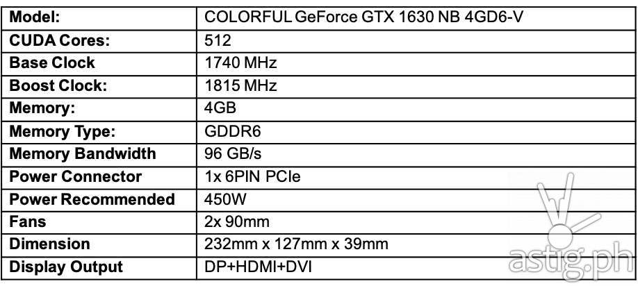 MANILA, Philippines – Colorful Technology Company Limited, a professional manufacturer of graphics cards, motherboards, all-in-one gaming and multimedia solutions, and high-performance storage, today announces the COLORFUL GeForce GTX 1630 NB graphics card powered by the newly released GeForce GTX 1630 graphics. This graphics card sports the signature black and red design of the COLORFUL NB Series and a slim 2-slot heatsink design with dual fans providing efficient cooling.