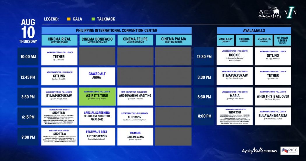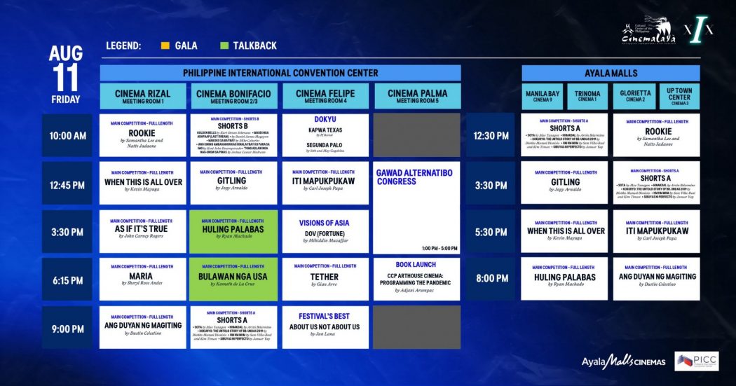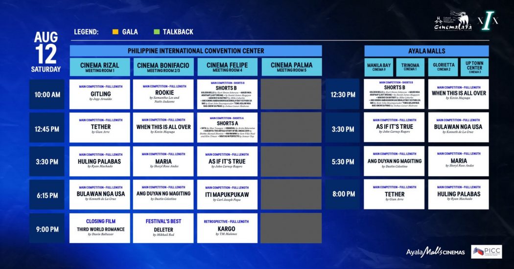 Hello again Cinemalaya on it’s 19th season and the schedule breakdown you’ve been waiting for happening from