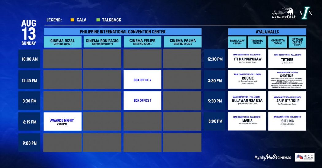 Hello again Cinemalaya on it’s 19th season and the schedule breakdown you’ve been waiting for happening from
