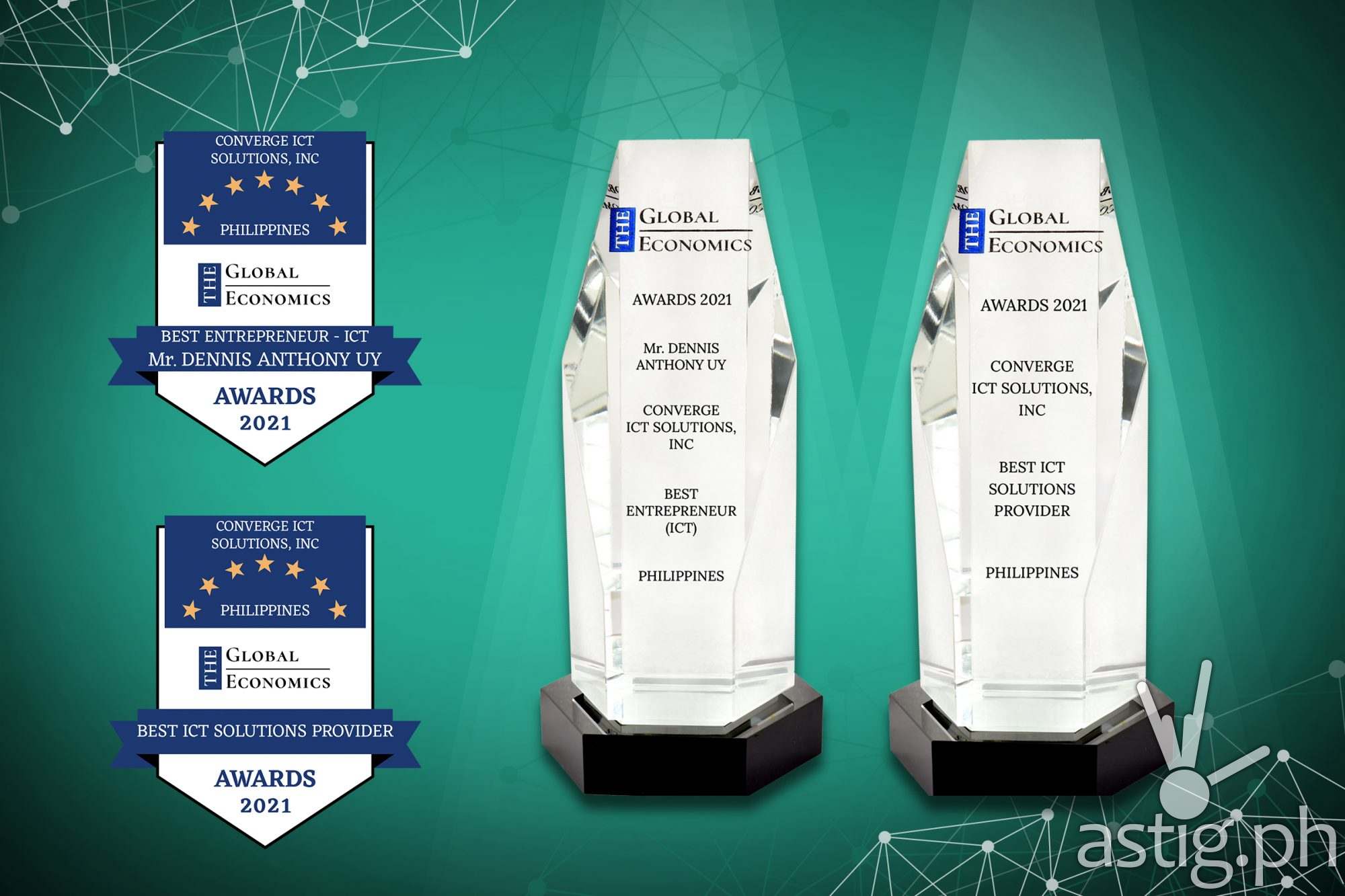 Converge was recognized as the Best ICT Solutions Provider under the Technology Awards Category and their CEO and Co-Founder Dennis Anthony H. Uy was awarded Best Entrepreneur – ICT under the Leadership Awards Category.