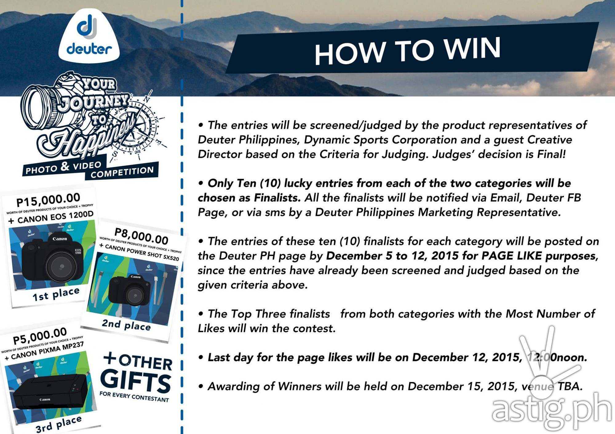 This Contest is Open to ALL outdoor enthusiasts! Cool and Exciting Prizes from Deuter Philippines and great cameras and other gadgets from Canon awaits the lucky winners per category.