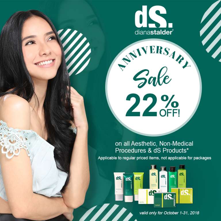 2. Discount is good for all Diana Stalder brand and minimum of PhP500 worth of aesthetic services only. Not applicable to Doctor’s procedures