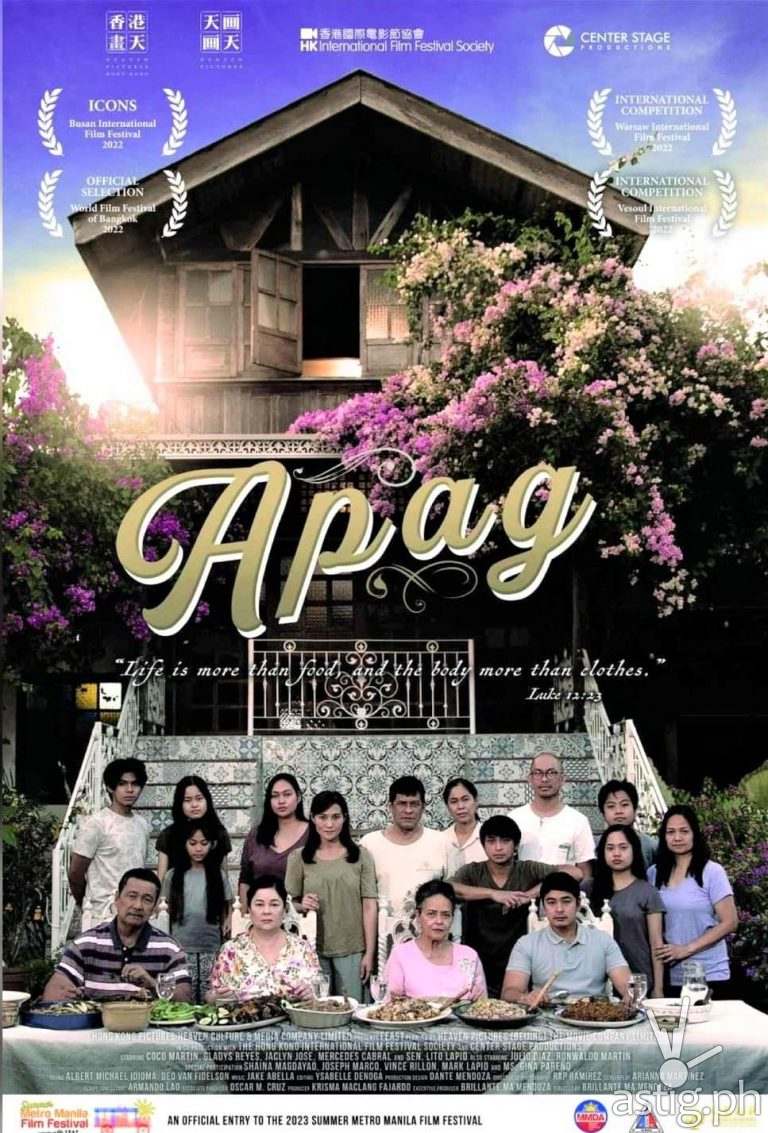According to Mendoza, Apag — taken from the Filipino compound “hapag kainan” or dining table — is a tribute to Philippine culture, particularly his own Kapampangan roots. Previously premiered at the BUSAN International Film Festival and featured in competition at the Warsaw International Film Festival, World Film Festival of Bangkok, Vesoul International Film Festival, and Asian Film Festival (South Korea) from 2022 to 2023, the movie refreshingly highlights local food and religion besides traditional Filipino family values.