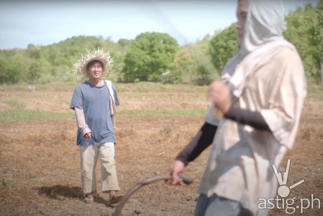 The video starts with a farmer hustling to borrow a carabao. When his friend suggests that he buy a tricycle instead, he counters by asking his friend to lend him some money for it.