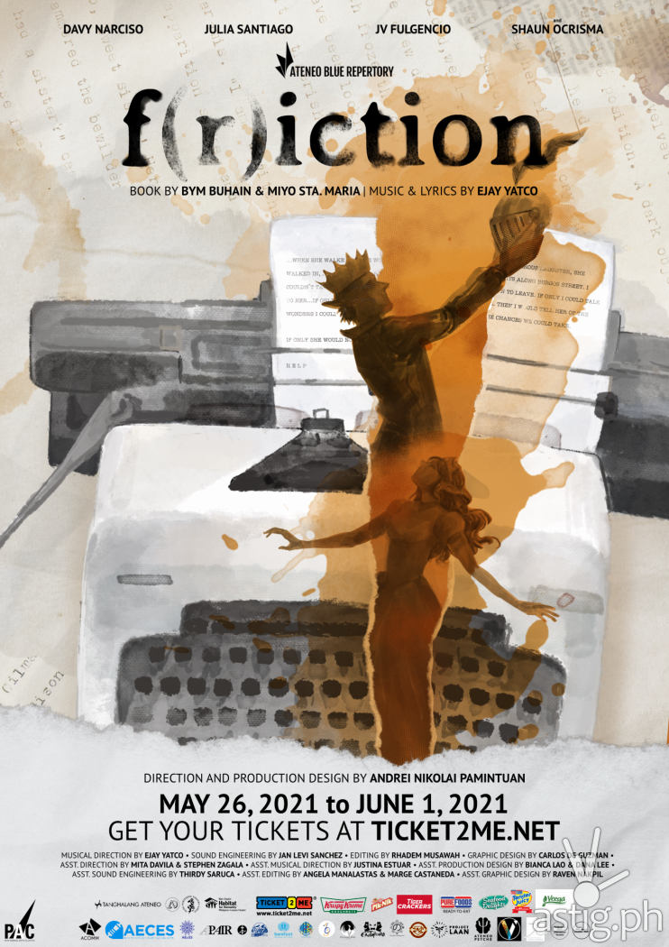 Written by Bym Buhain & Miyo Sta. Maria, with music and lyrics by Ejay Yatco, the new f(r)iction features new songs, new characters, and a new story that encourages us to reexamine what happiness and success truly mean. It follows the story of Karlo, a struggling writer on the brink of being published, whose whole life and long-term relationship are turned upside down when he meets a mysteriously charismatic stranger.