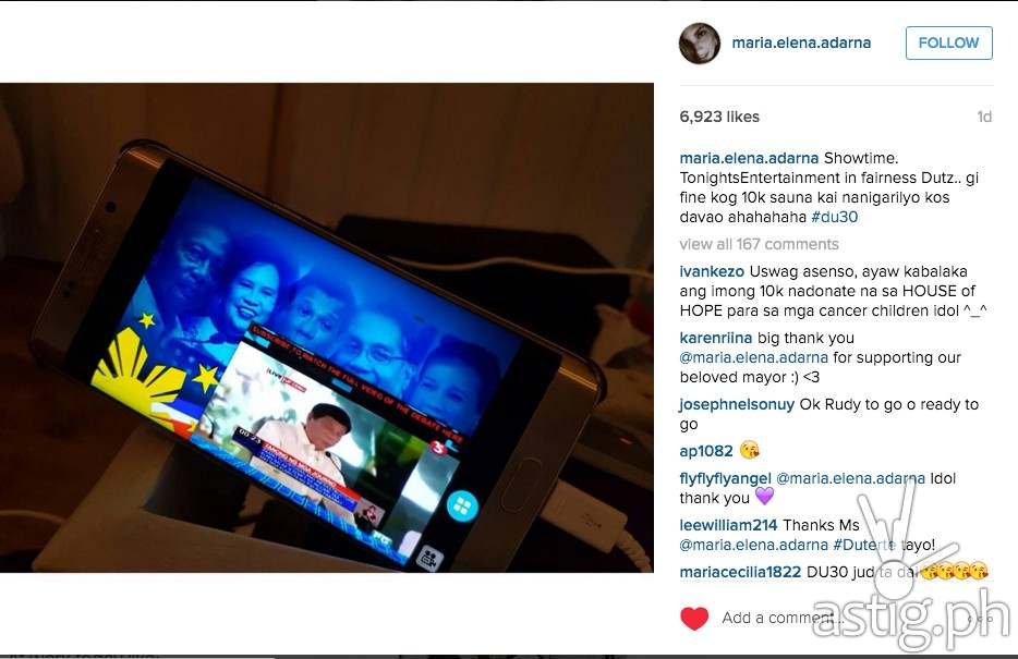 During the second leg of #PilipinasDebates2016 hosted by Tv5, kapamilya sexy actress Ellen Adarna surprisingly posted in her Instagram account that is supporting the mayor even if she was once violated an ordinance in Davao.