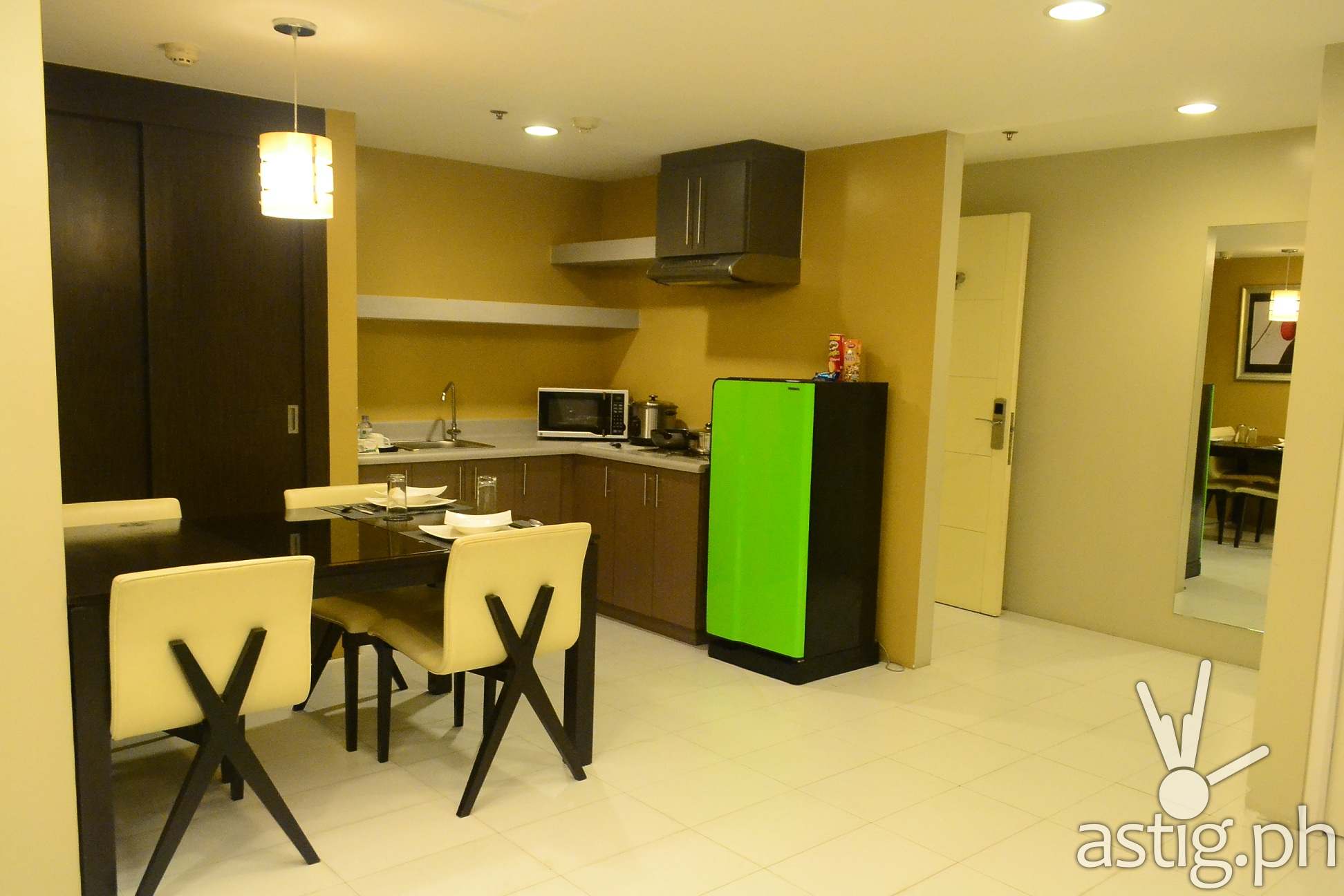 Can you believe that our room has its own kitchen? You can actually cook your own food during your stay!