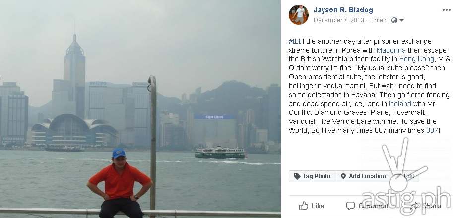 #TBT I die another day after prisoner exchange xtreme torture in Korea with Madonna then escape the British Warship prison facility in Hong Kong, M & Q dont worry im fine. "My usual suite please? then Open presidential suite, the lobster is good, bollinger n vodka martini.