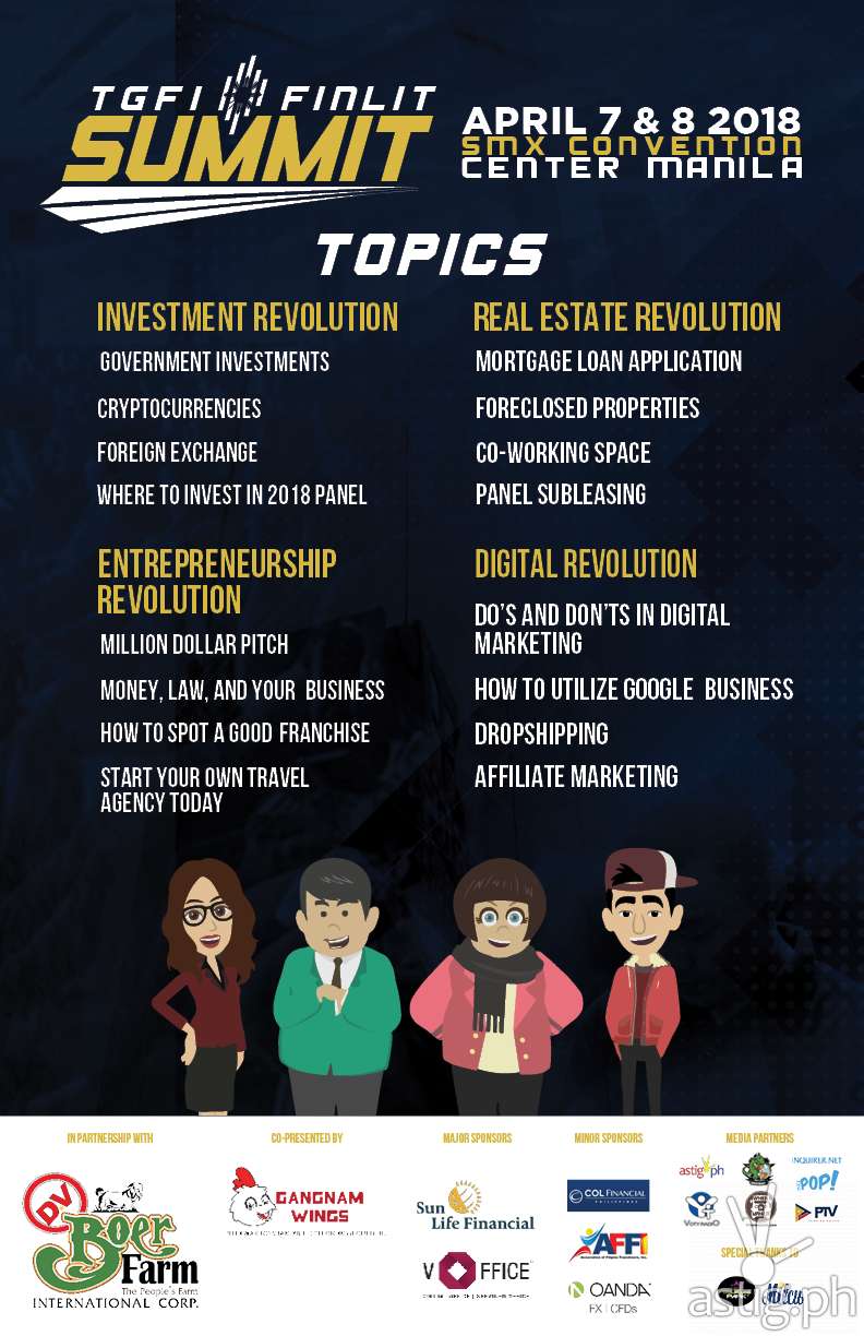 Dahil ‘dyan, the biggest Financial Literacy Summit in the Philippines is finally back this April 7-8, 2018 at the SMX Convention Center, Pasay City, Manila as we feature more than 20 speakers in the business and investment scene para maturuan tayo on how we can grow our hard earned money.