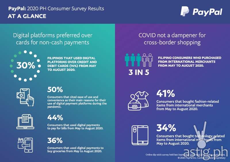 The 2020 PayPal Consumer Insights Survey was conducted with 500 Filipinos via online survey with the objective of identifying the impact of COVID-19 on local payment behaviors.