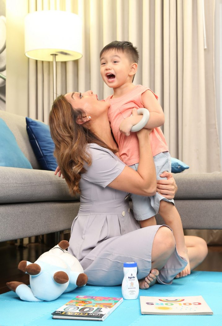 Iya believes that learning is so much better when some glee is thrown in for good measure. To teach her boys about their body parts, she asks them to name which part she is applying moisturizer on. This helps them develop better coordination and awareness of their own bodies. “We use a moisturizer like Babyflo Baby Oil Light immediately after their bath,” shares Iya, “I like it because it goes into the skin easily without leaving a greasy feeling so it’s great to use every day!”