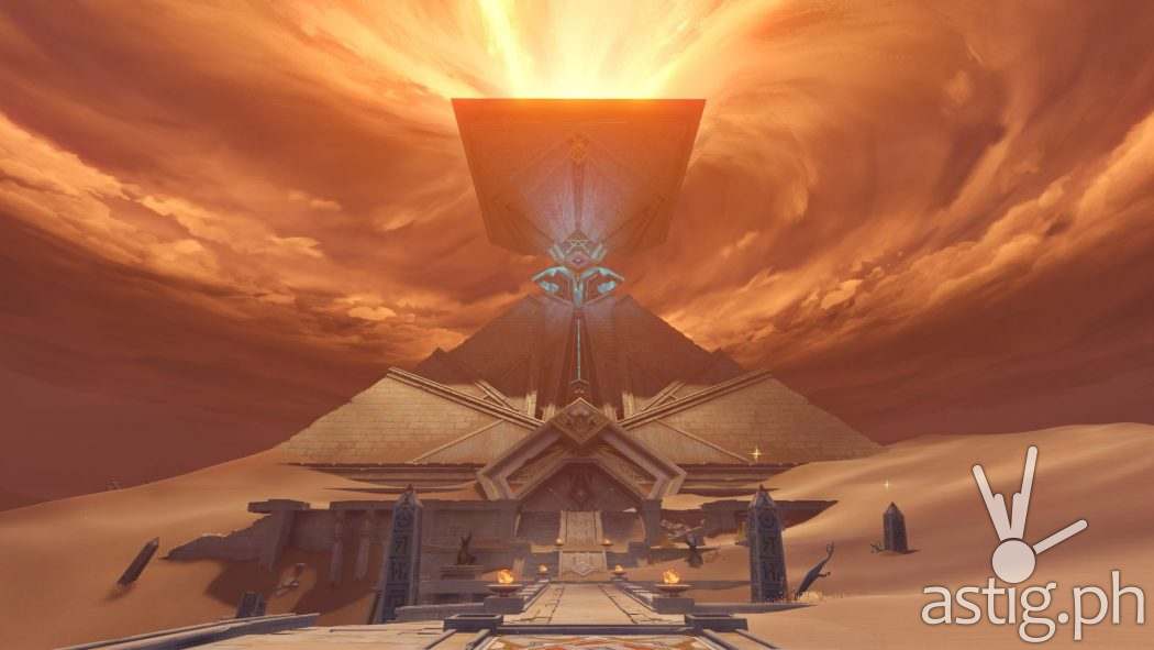 In contrast to the tropical rainforest, the harsh desert of Sumeru has a stark, dangerous beauty. In the heart of the desert stands the majestic Mausoleum of King Deshret and dungeons full of puzzles, mechanisms, and robotic guardians powered by ancient technologies of the perished god and his ancient civilization. The desert is also home to Aaru Village, the largest settlement of the desert people and a safe harbor for exiled scholars and a wealth of information. As players delve into the desert area, Sumeru’s Archon Quest continues to unfold as more factions make their appearances, including two Fatui Harbingers, Il Dottore and Scaramouche.