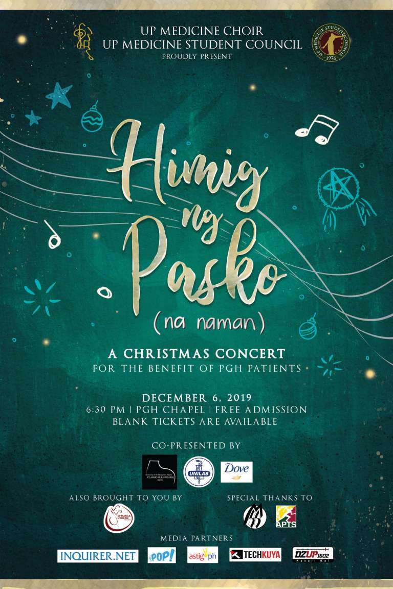 To send holiday cheers through music, UP MedChoir and the UP Medicine Student council will be holding a Christmas concert entitled “Himig ng Pasko (Na Naman)” at the Philippine General Hospital Chapel on December 6, 2019 6:30PM.