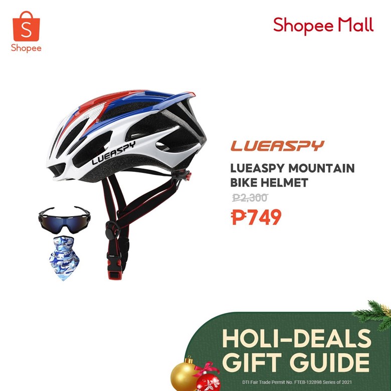 Remind all your outdoorsy pals to stay safe on the road with LUEASPY Mountain Bike Helmet. The padded design enhances comfort and sweat wickings, and its large front air inlet improves airflow and keeps the head cool. This helmet, which also comes with matching sunglasses and a protective scarf, is available for only less than ₱1,000.